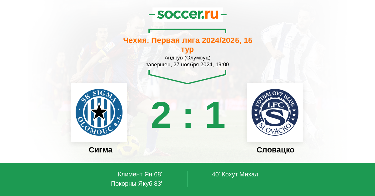 Протокол матча Сигма против Словацко