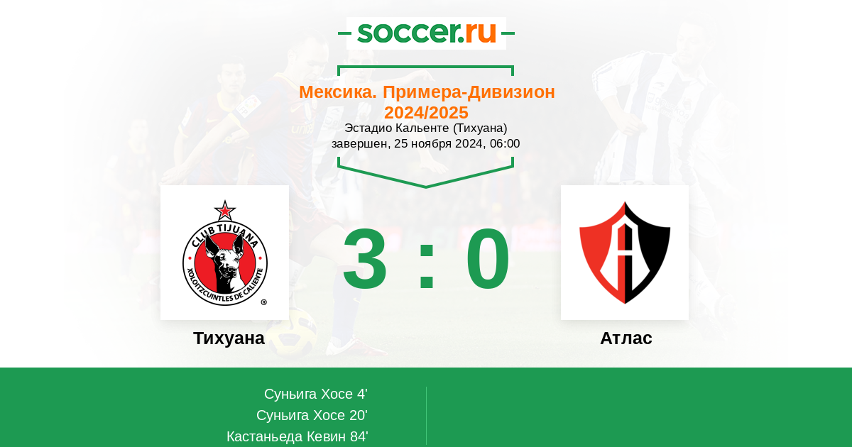 Протокол матча Тихуана против Атлас