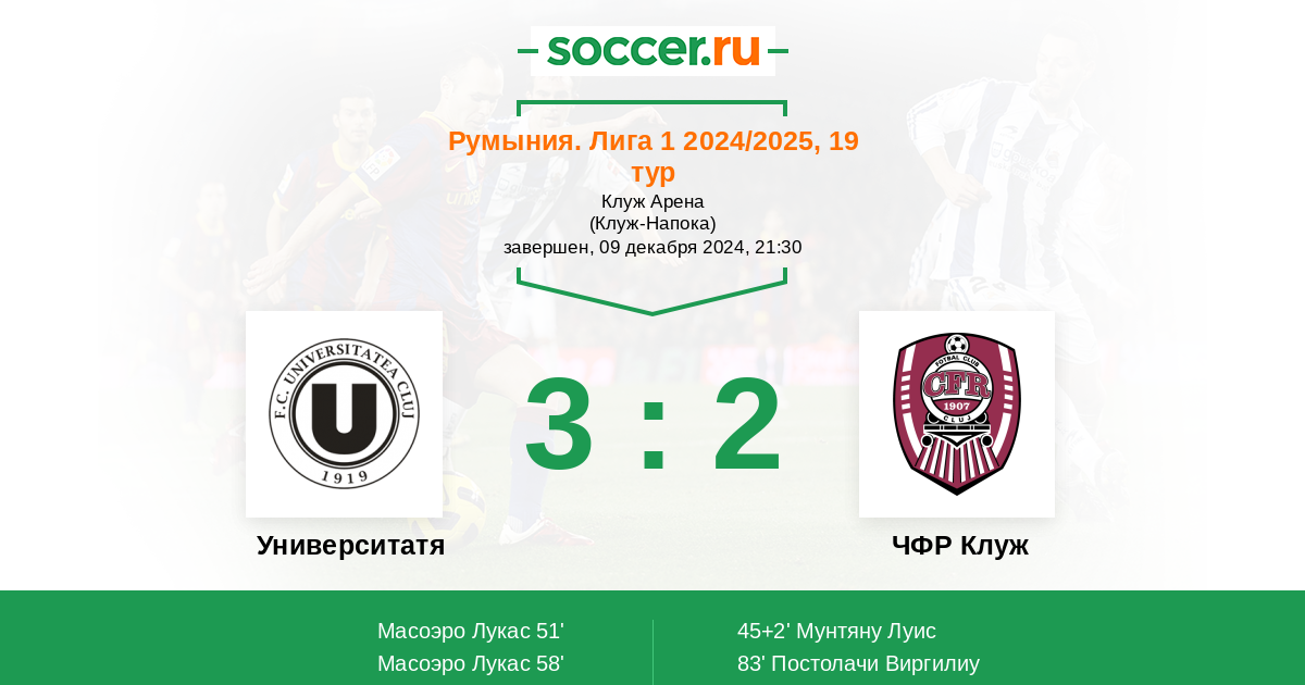 Протокол матча Университатя Клуж против ЧФР Клуж