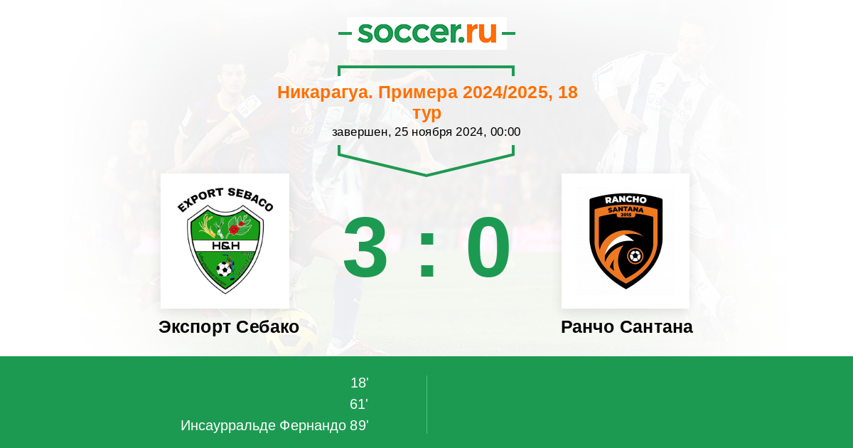 Протокол матча Экспорт Себако против Ранчо Сантана