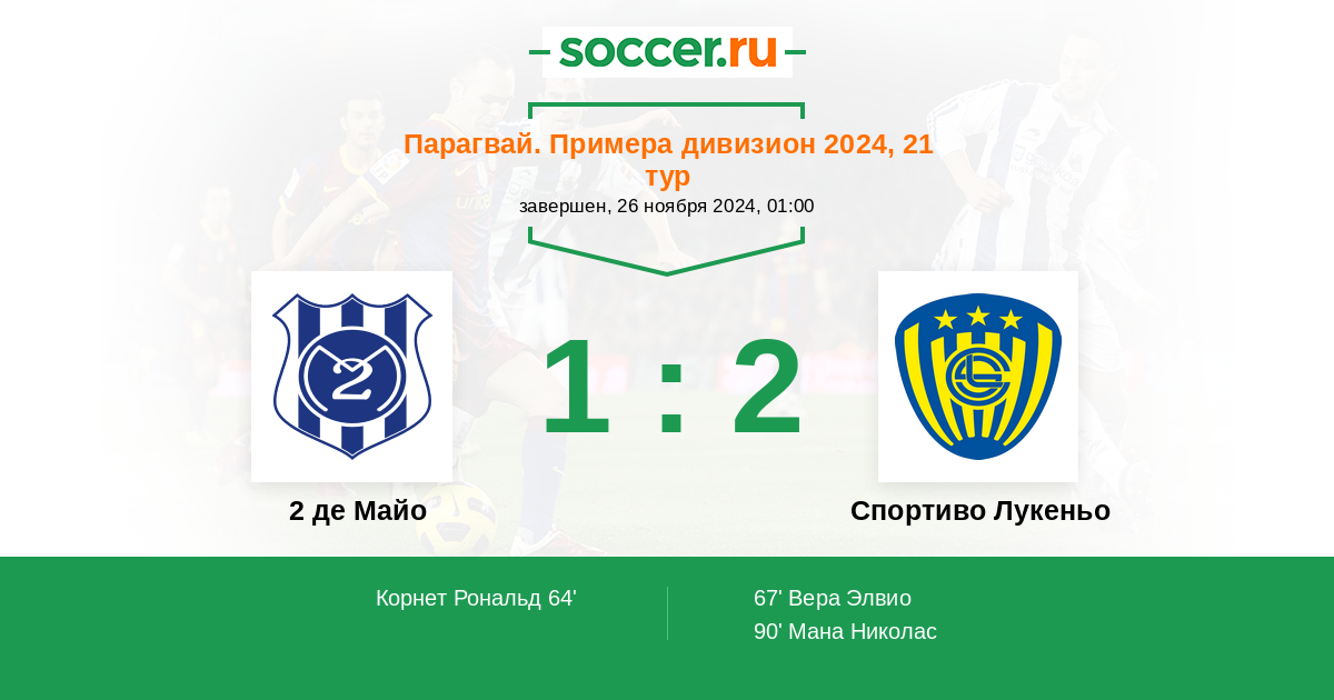 Протокол матча 2 де Майо против Спортиво Лукеньо