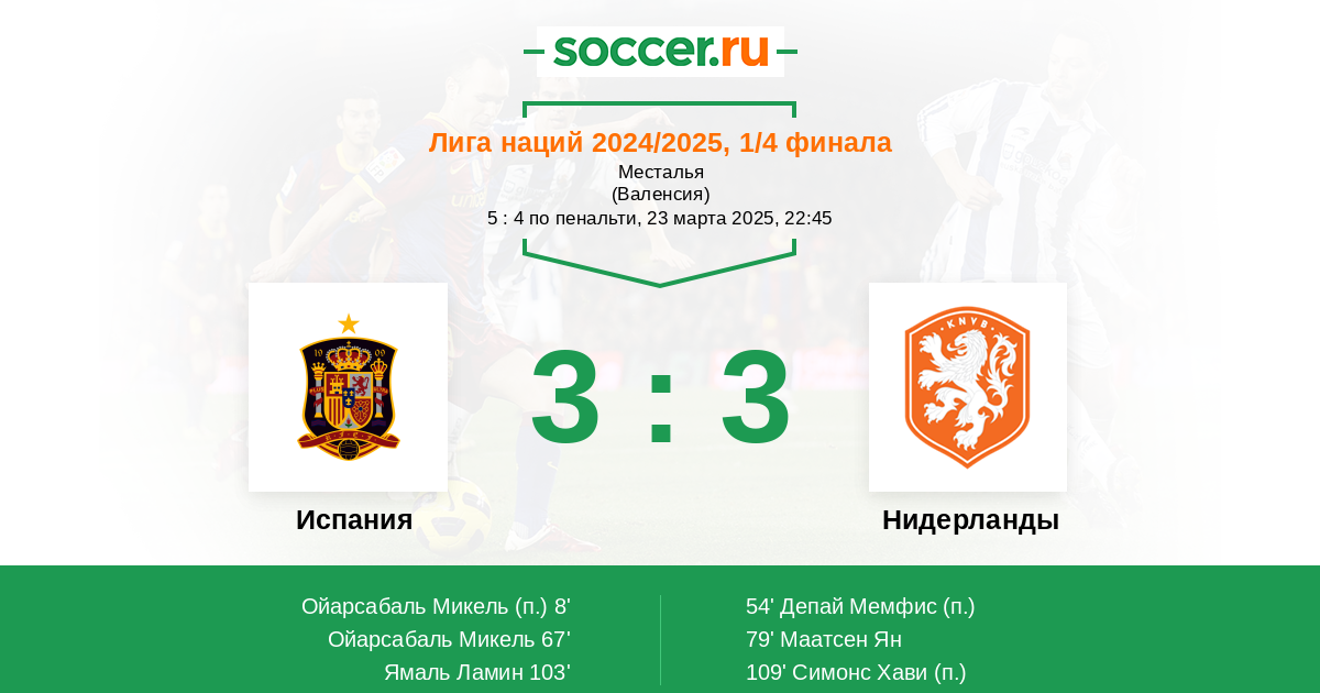 Испания под руководством Луиса де ла Фуэнте стремится контролировать владение мячом и диктовать темп, что зачастую приводит к меньшему количеству фолов и дисциплинированной обороне. Нидерланды под руководством Рональда Кумана, напротив, предпочитают быстрые переходы и креативную игру, что отражается в большем количестве фолов и карточек. Этот контраст может склонить чашу весов в пользу победы Испании.
