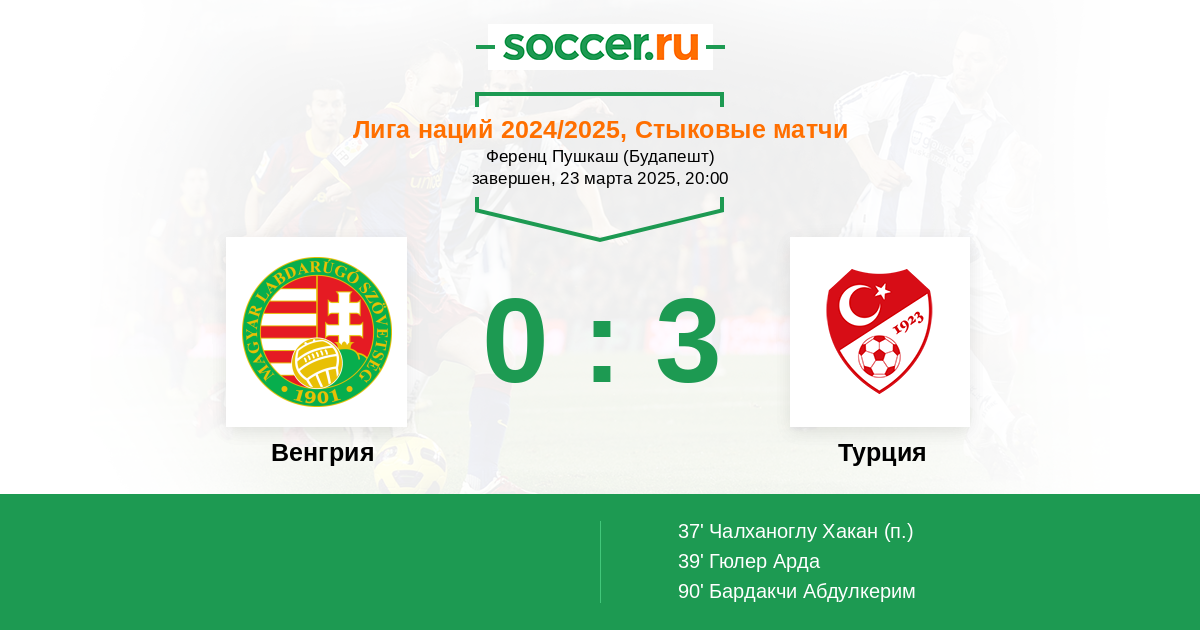 Протокол матча Венгрия против Турция