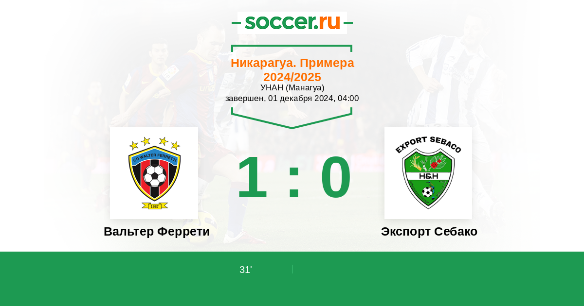 Протокол матча Вальтер Феррети против Экспорт Себако