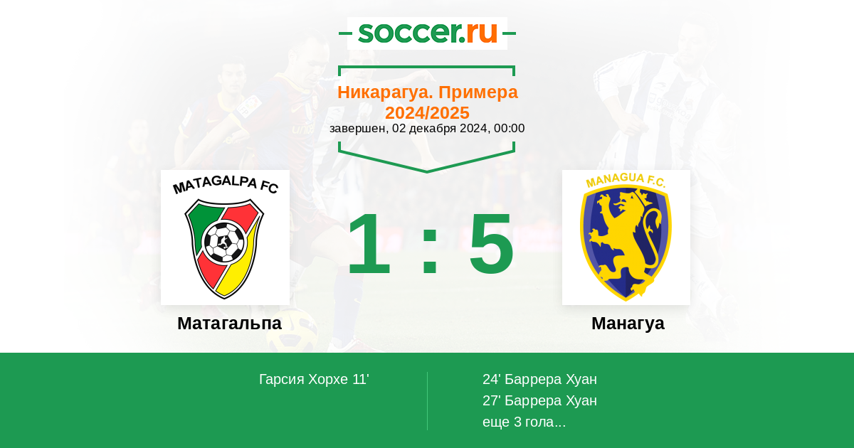 Протокол матча Матагальпа против Манагуа