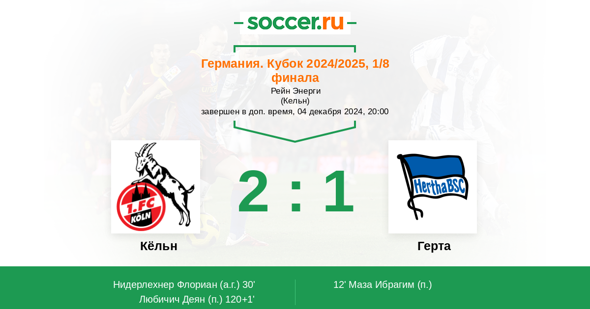 Протокол матча Кёльн против Герта