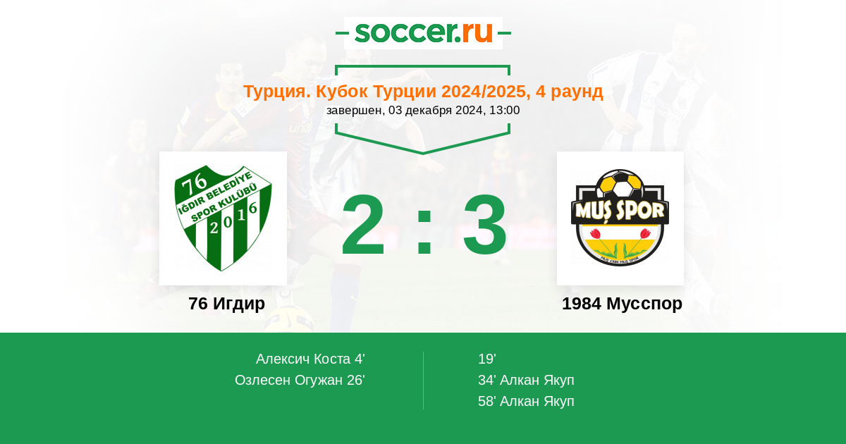 Протокол матча 76 Игдир против 1984 Мусспор
