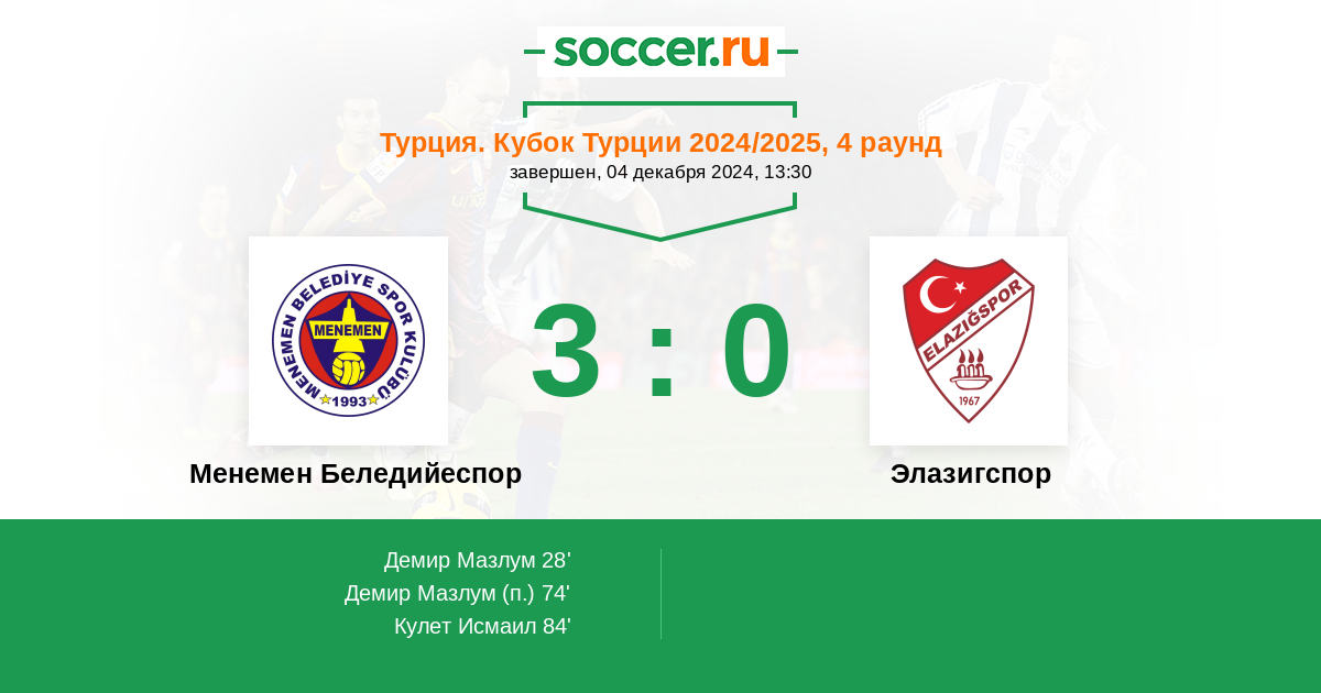 Протокол матча Менемен Беледийеспор против Элазигспор