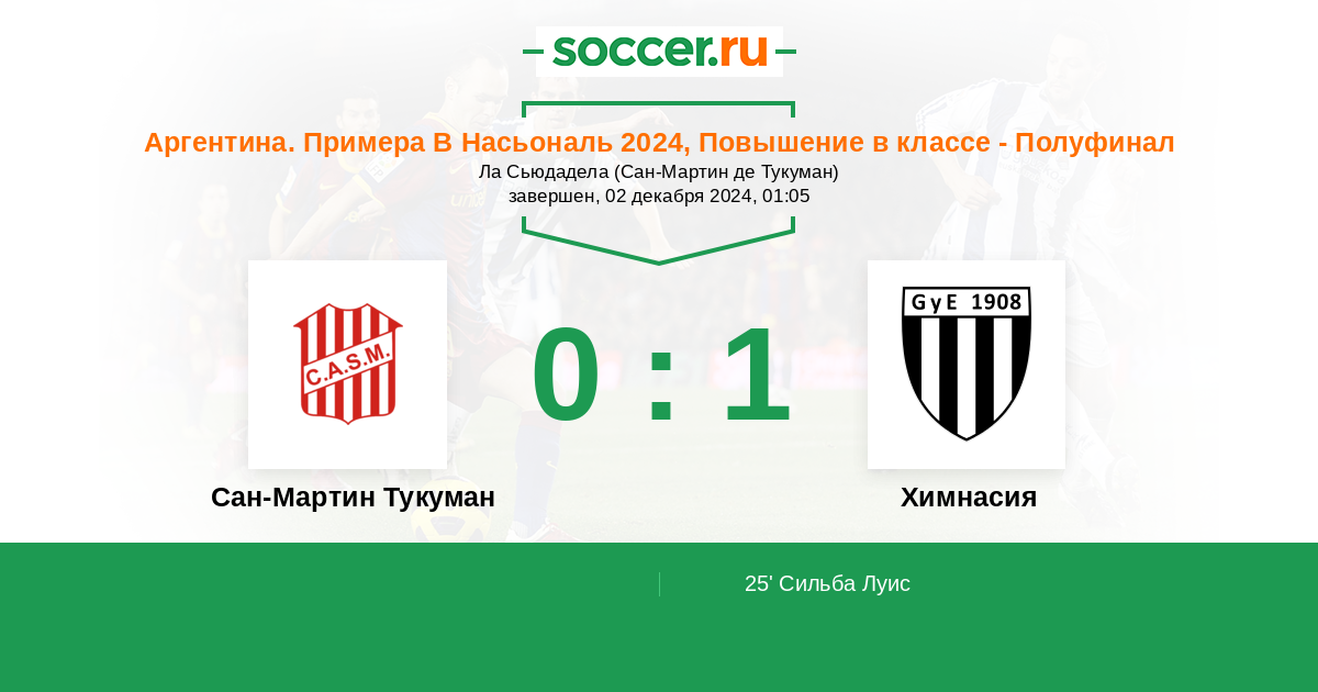 Протокол матча Сан-Мартин Тукуман против Химнасия