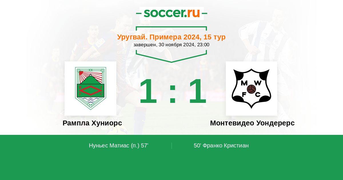 Протокол матча Рампла Хуниорс против Монтевидео Уондерерс