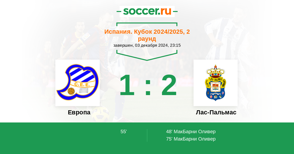 Протокол матча Европа против Лас-Пальмас