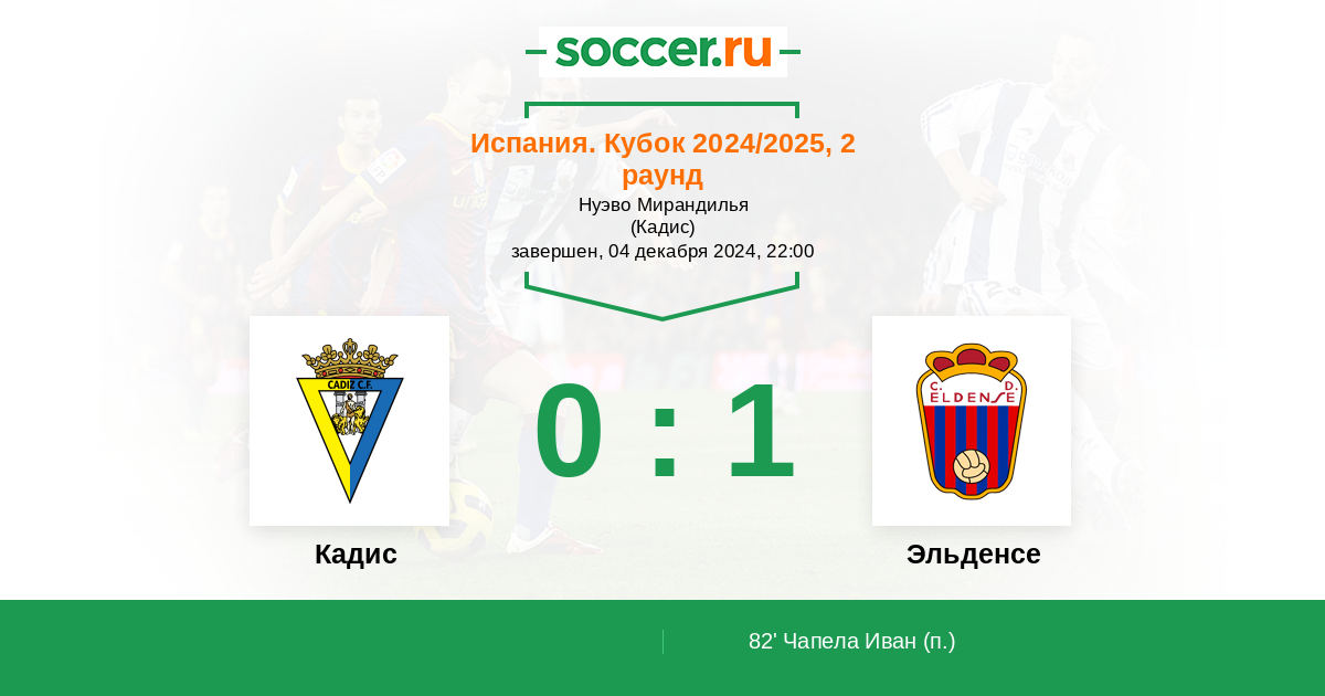 Протокол матча Кадис против Эльденсе
