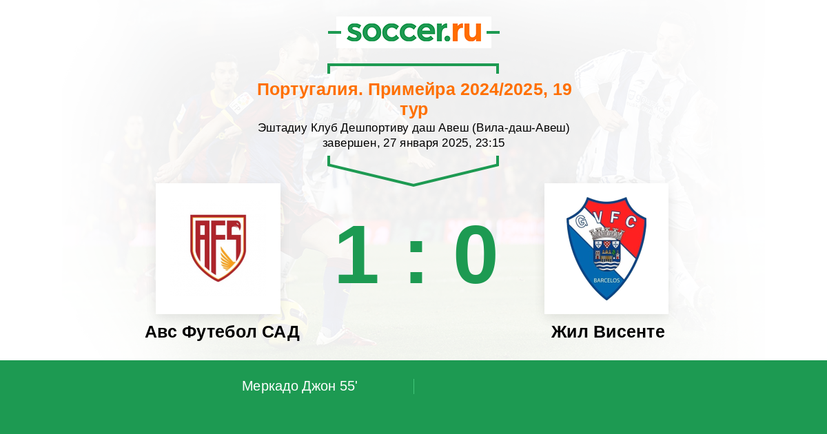 Протокол матча Авс Футебол САД против Жил Висенте