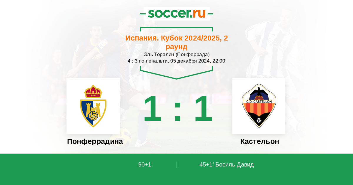 Протокол матча Понферрадина против Кастельон