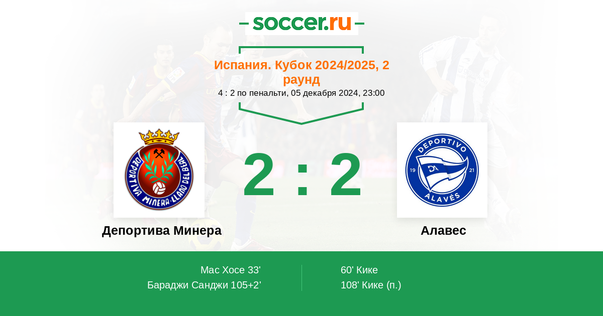Протокол матча Депортива Минера против Алавес
