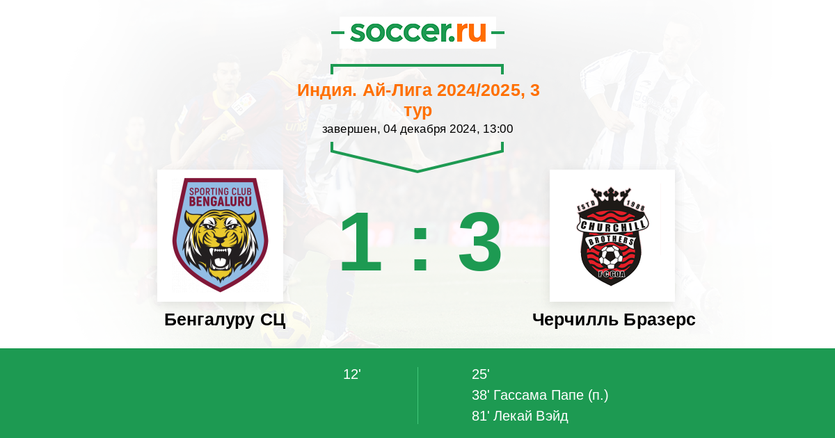Протокол матча Бенгалуру СЦ против Черчилль Бразерс