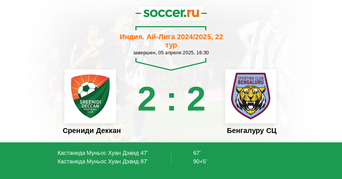Протокол матча Срениди Деккан против Бенгалуру СЦ