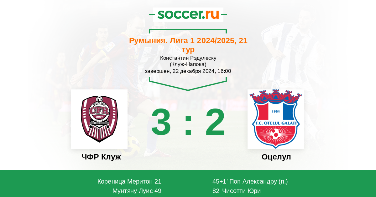 Протокол матча ЧФР Клуж против Оцелул