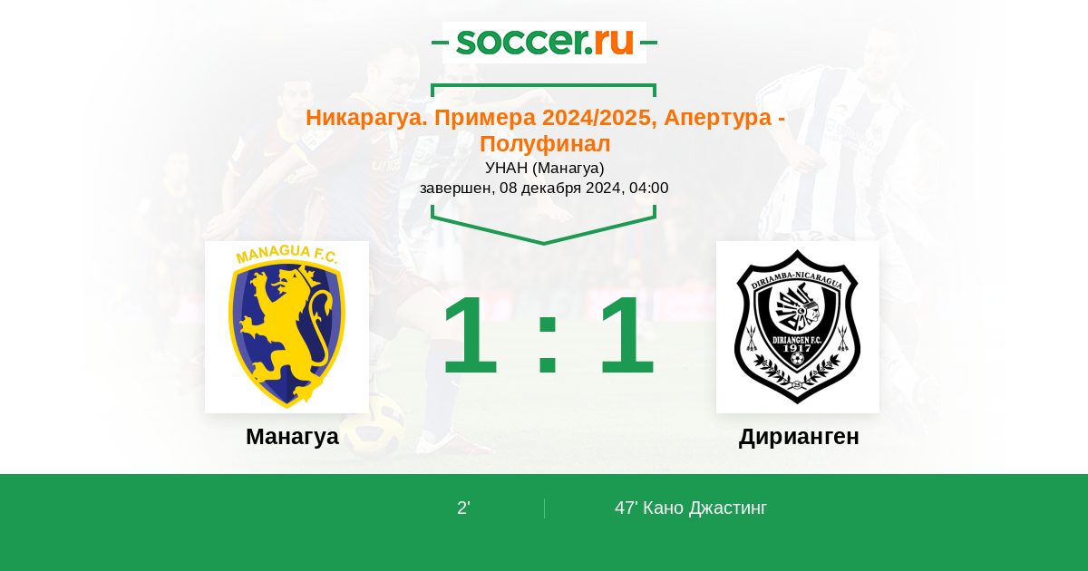 Протокол матча Манагуа против Дирианген