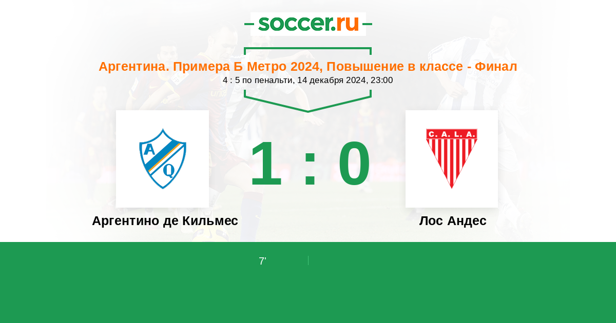 Протокол матча Аргентино де Кильмес против Лос Андес