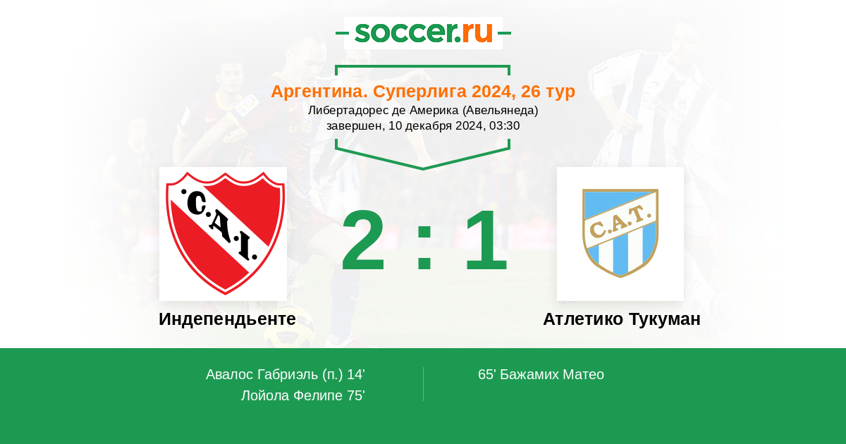 Протокол матча Индепендьенте против Атлетико Тукуман