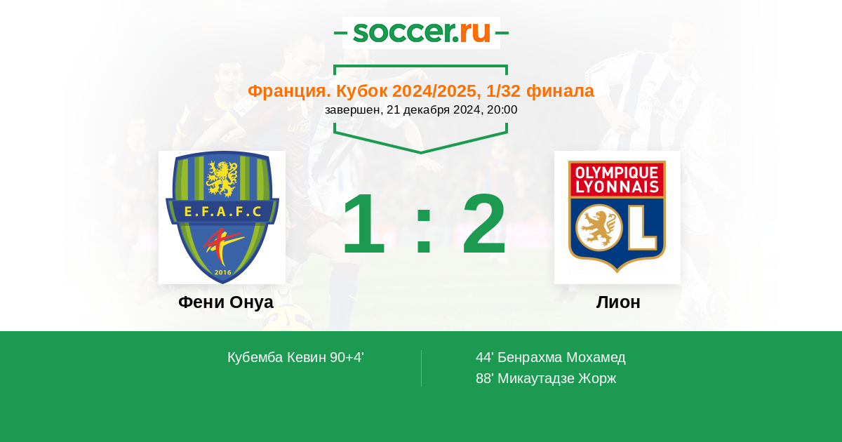 Протокол матча Фени Онуа против Лион