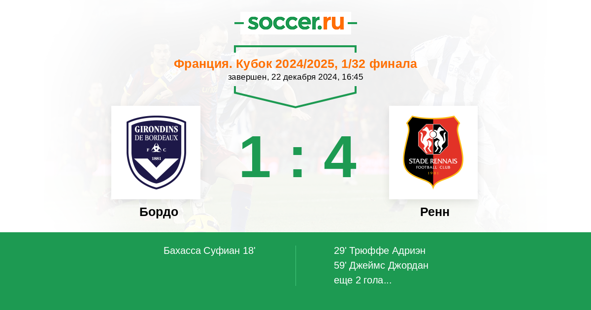 Протокол матча Бордо против Ренн