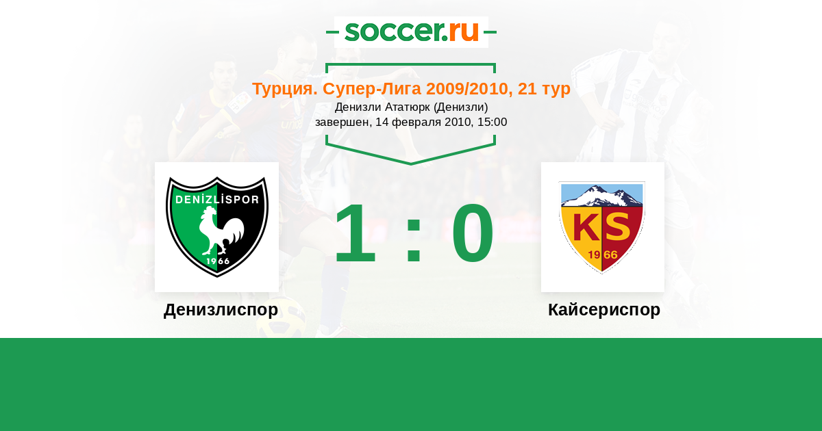 Турция. Суперлига 29.08.2009 Кайсериспор Логотип футбольный клуб Кайсериспор 3:0 Логотип футбольный клуб Денизлиспор Денизлиспор