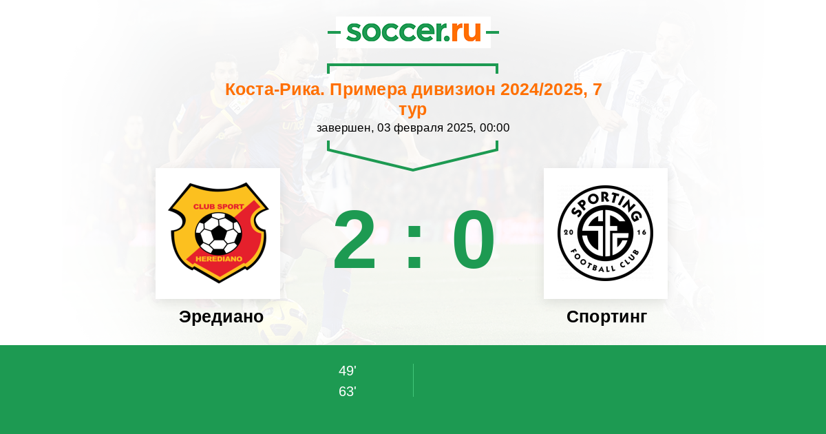 Протокол матча Эредиано против Спортинг Сан-Хосе