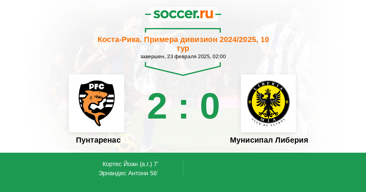 Протокол матча Пунтаренас против Либерия