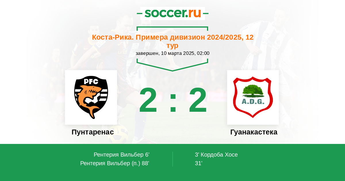 Протокол матча Пунтаренас против Гуанакастека