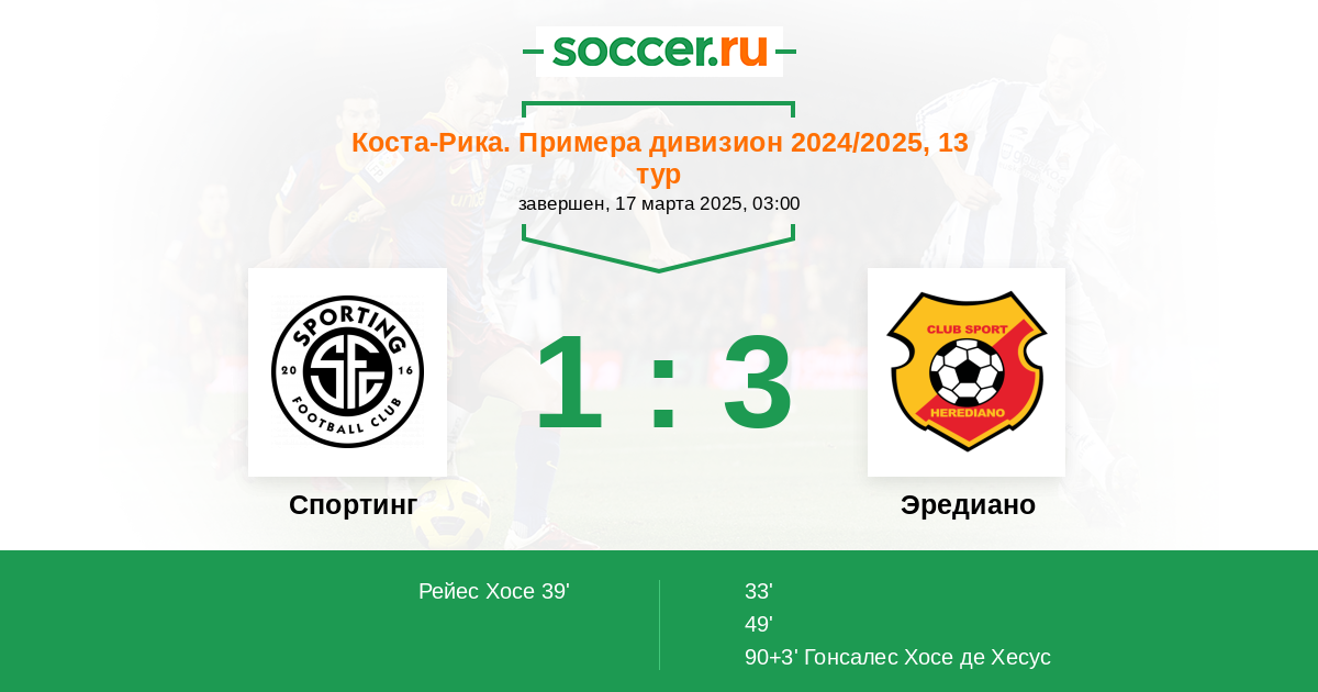 90+3’ 1:3 Гонсалес Хосе де Хесус