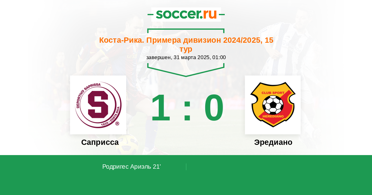 Протокол матча Саприсса против Эредиано