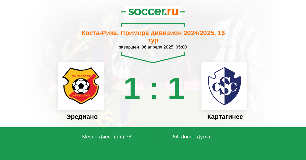78' (1:1) Автогол Месен Диего