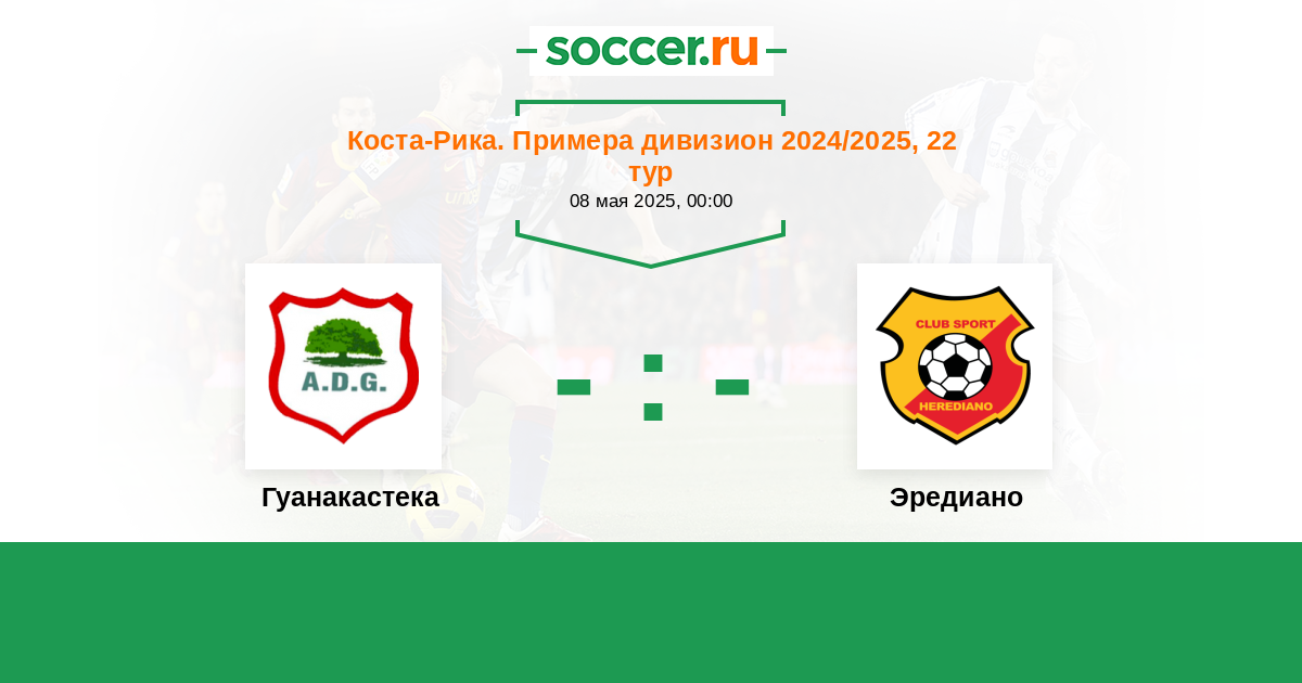 Коста-Рика. Примера дивизион 16.01.2025 Эредиано Логотип футбольный клуб Эредиано 4:1 Логотип футбольный клуб Гуанакастека (Никойя) Гуанакастека