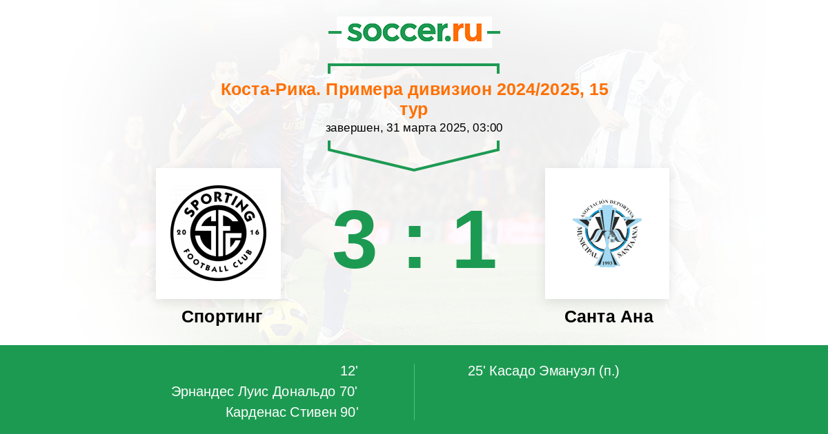 Протокол матча Спортинг Сан-Хосе против Санта Ана