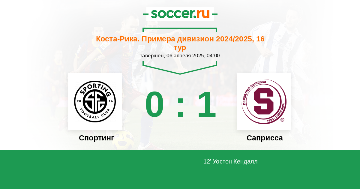 Протокол матча Спортинг Сан-Хосе против Саприсса