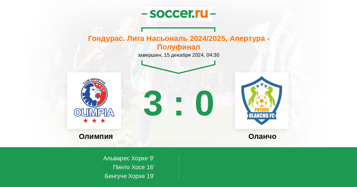 Протокол матча Олимпия против Оланчо