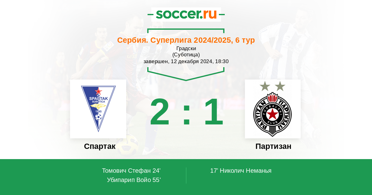 55' (2:1) Убипарип Войо (14) (Мижич Милош (20))