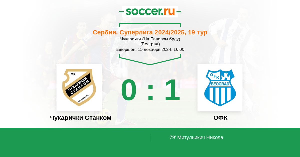 Протокол матча Чукарички Станком против ОФК