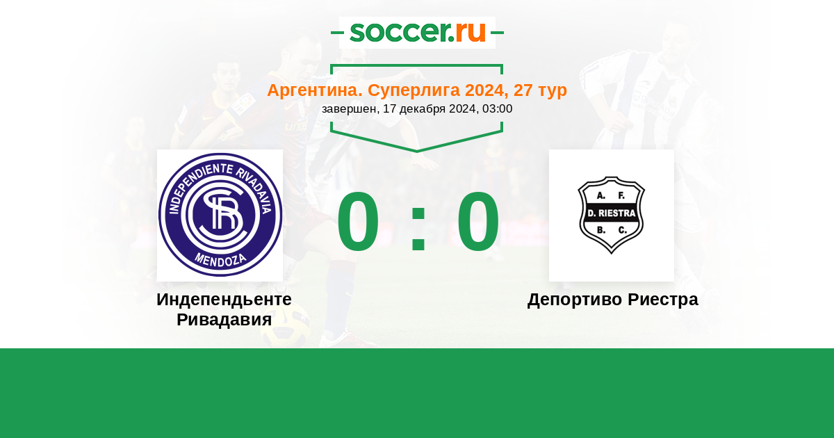 Протокол матча Индепендьенте Ривадавия против Депортиво Риестра