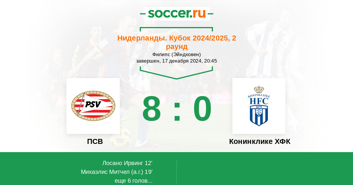 Протокол матча ПСВ против Конинклике ХФК