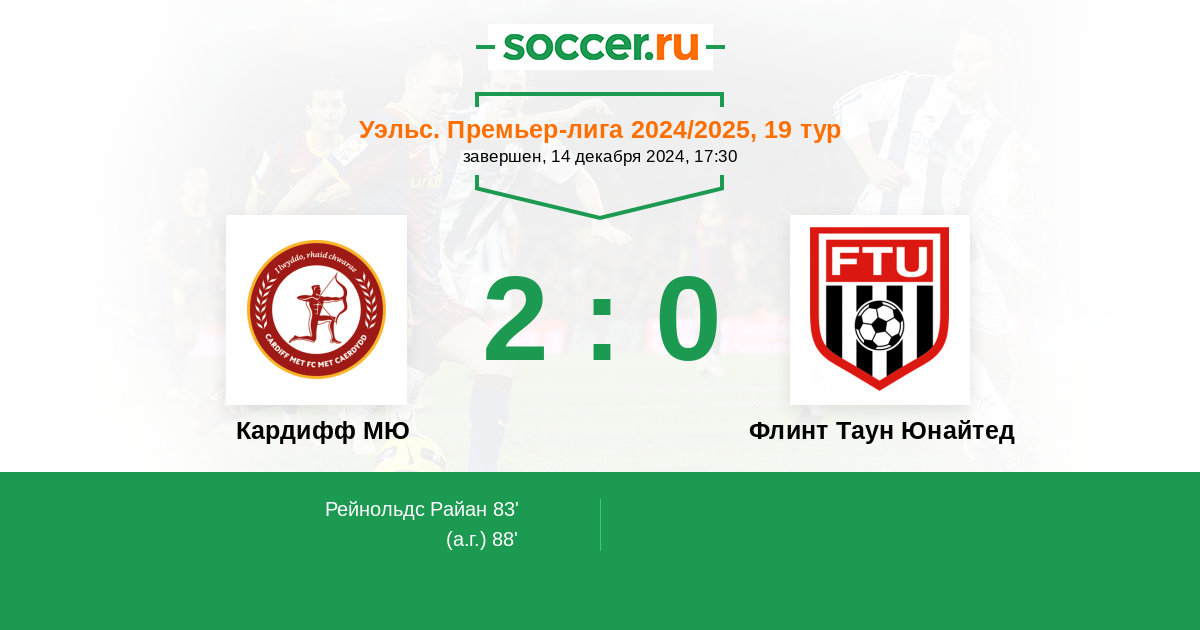 Протокол матча Кардифф МЮ против Флинт Таун Юнайтед