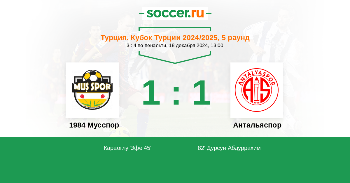 82' (1:1) Дурсун Абдуррахим (77) (Балджы Бюньямин (7))