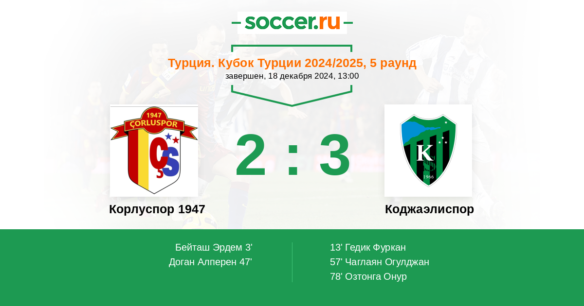 Протокол матча Корлуспор 1947 против Коджаэлиспор