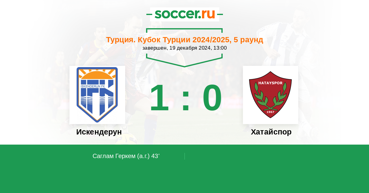 Протокол матча Искендерун против Хатайспор