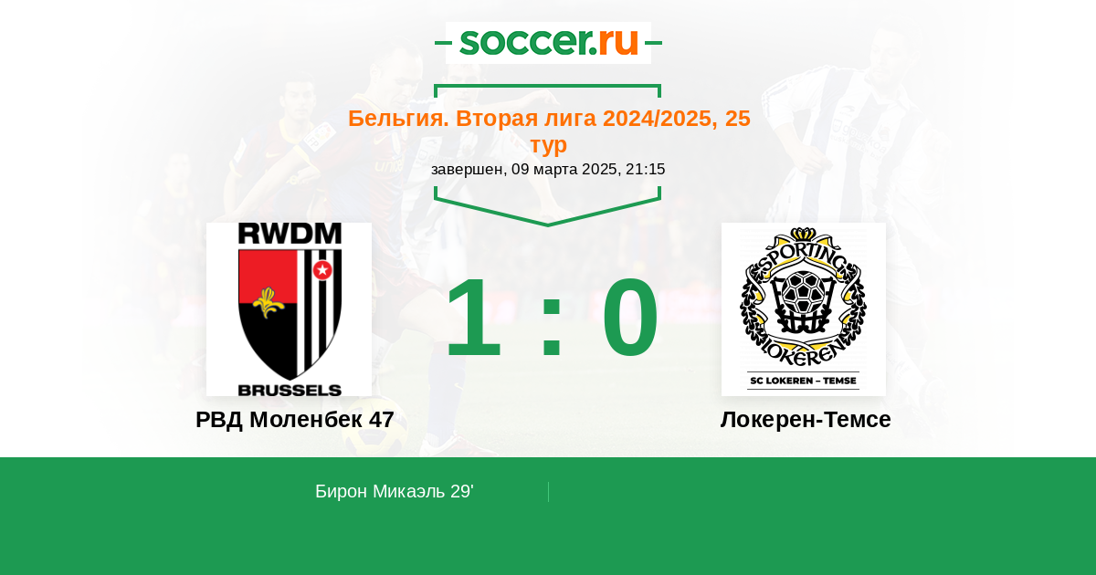 Протокол матча РВД Моленбек 47 против Локерен-Темсе