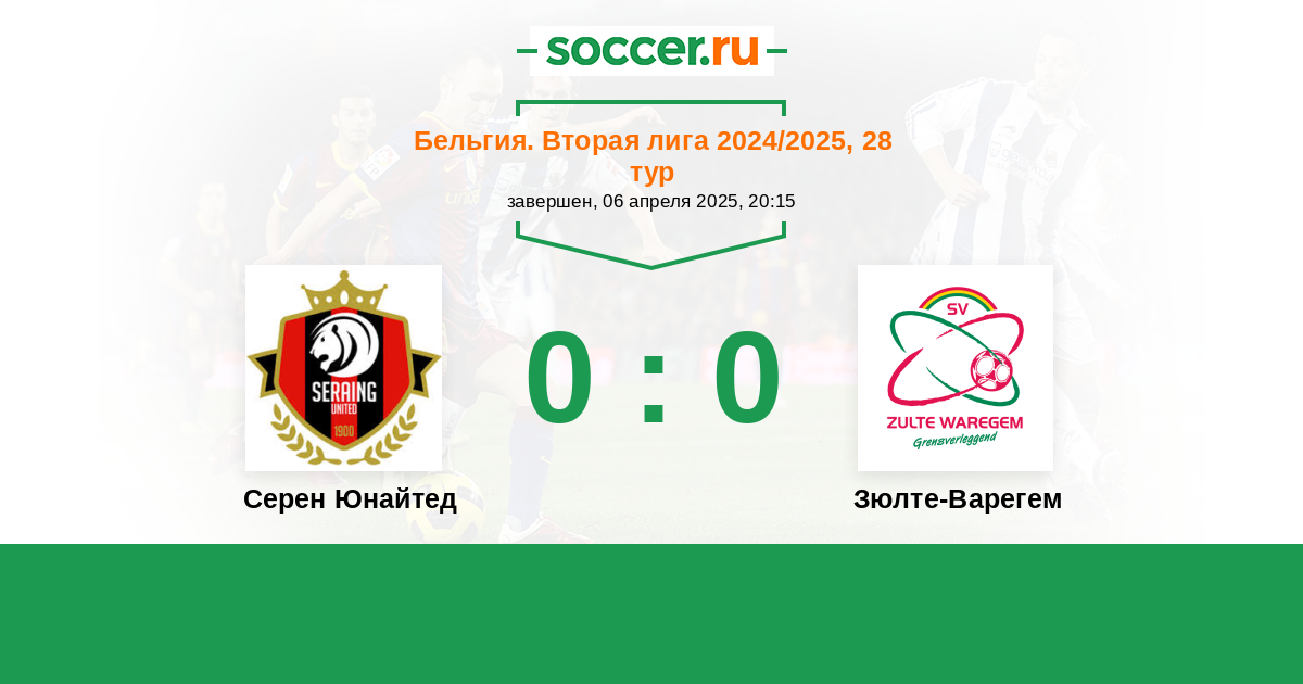 Протокол матча Серен Юнайтед против Зюлте-Варегем
