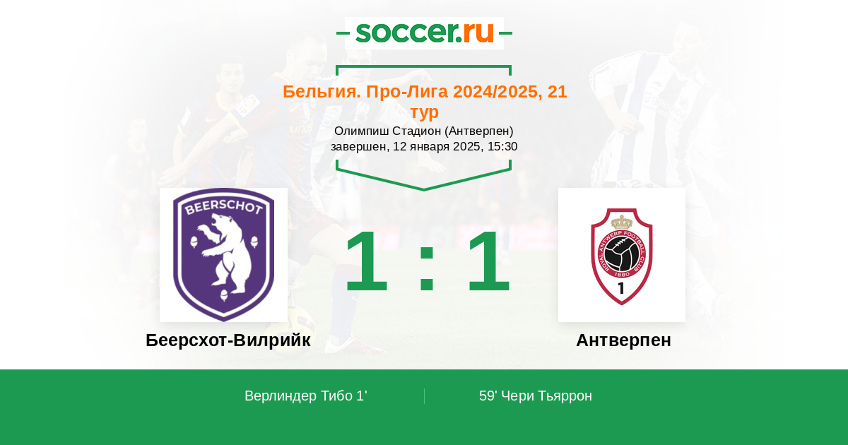 Протокол матча Беерсхот-Вилрийк против Антверпен