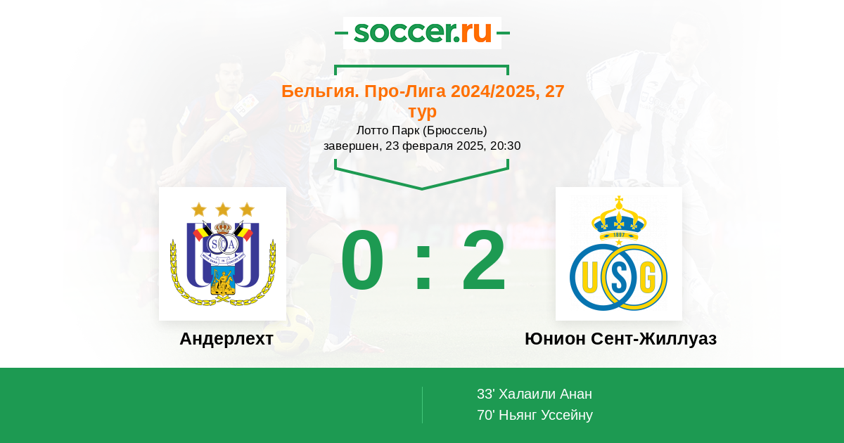 Протокол матча Андерлехт против Юнион Сент-Жиллуаз